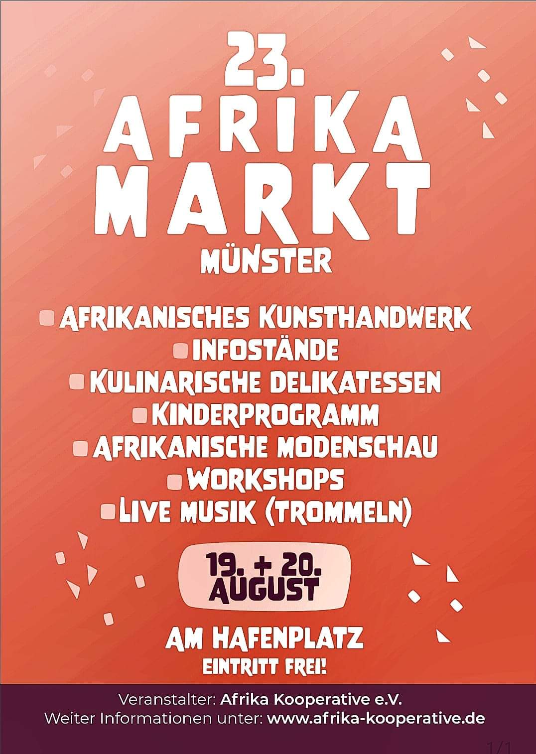 Plakat MiAD e.V. lädt herzlich ein, das marokkanische Zelt im Rahmen der Aktivitäten des Afrika-Festivals am 19. und 20. August zu besuchen. Kulturelles Leave a Reply Cancel replyYour email address will not be published. Required fields are marked *Comment * Name * Email * Website Save my name, email, and website in this browser for the next time I comment. VorigerNächster