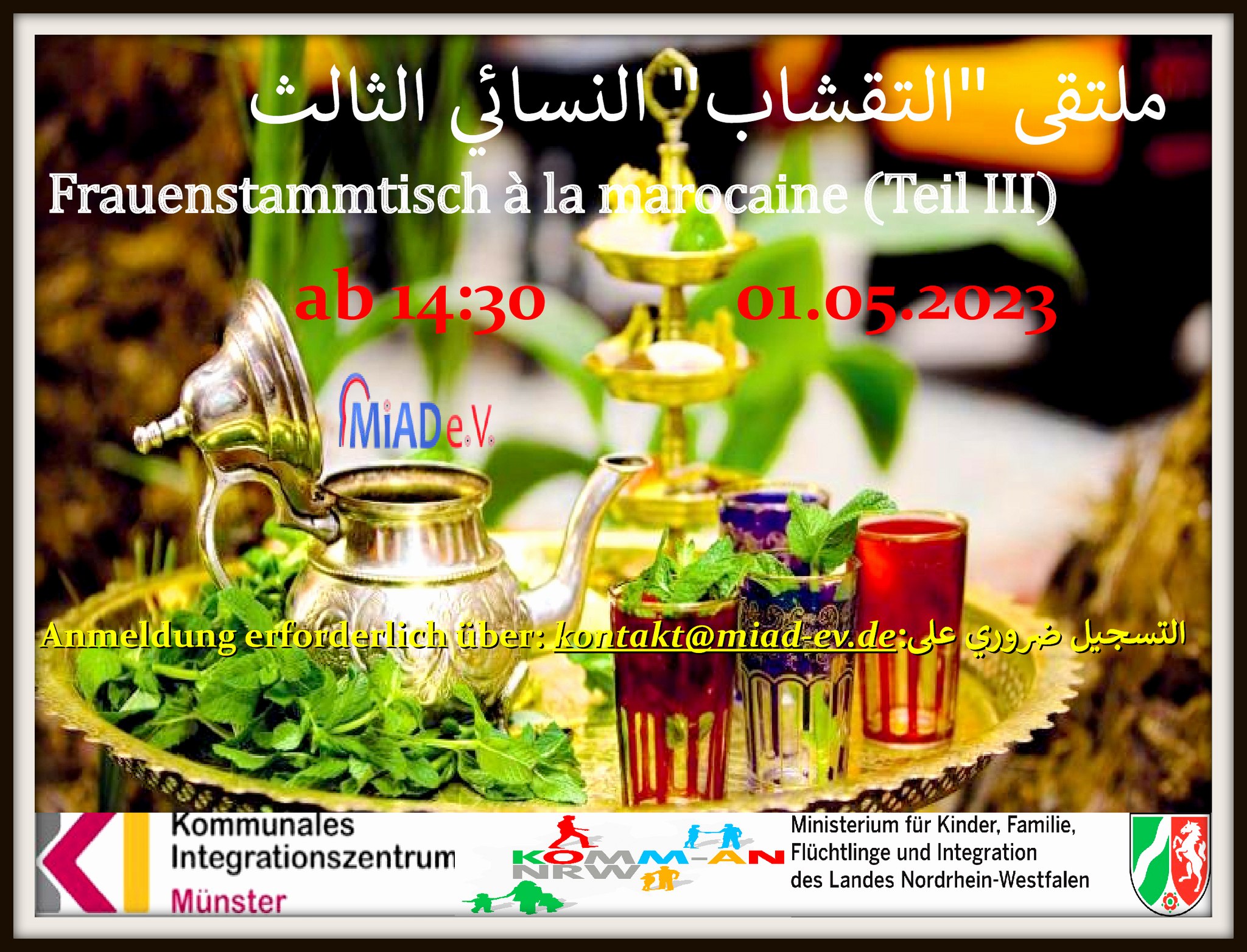 Nachträglich zum Zuckefest 2023 lädt die Frauengruppe von MiAD e.V. herzlich zu einem Taqshab-Treff ein, bei der die Gäste schöne Zeit verbringen und sich in einer lockeren Atmosphäre unterhalten. Für das leibliche Wohl ist gesorgt.